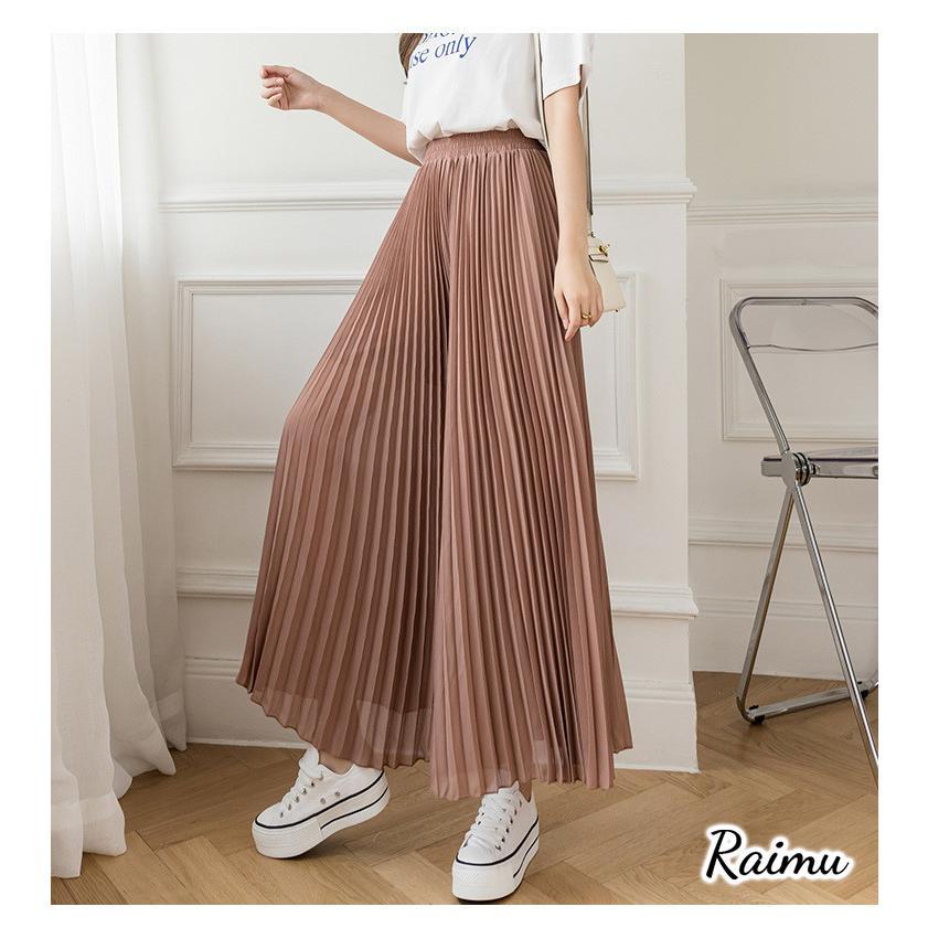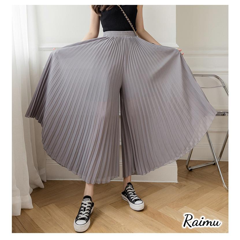シフォンプリーツワイドパンツ レディース ワイドパンツ シフォン ワイド パンツ シフォンパンツ ボトムス 快適 ロング丈 ガウチョパンツ